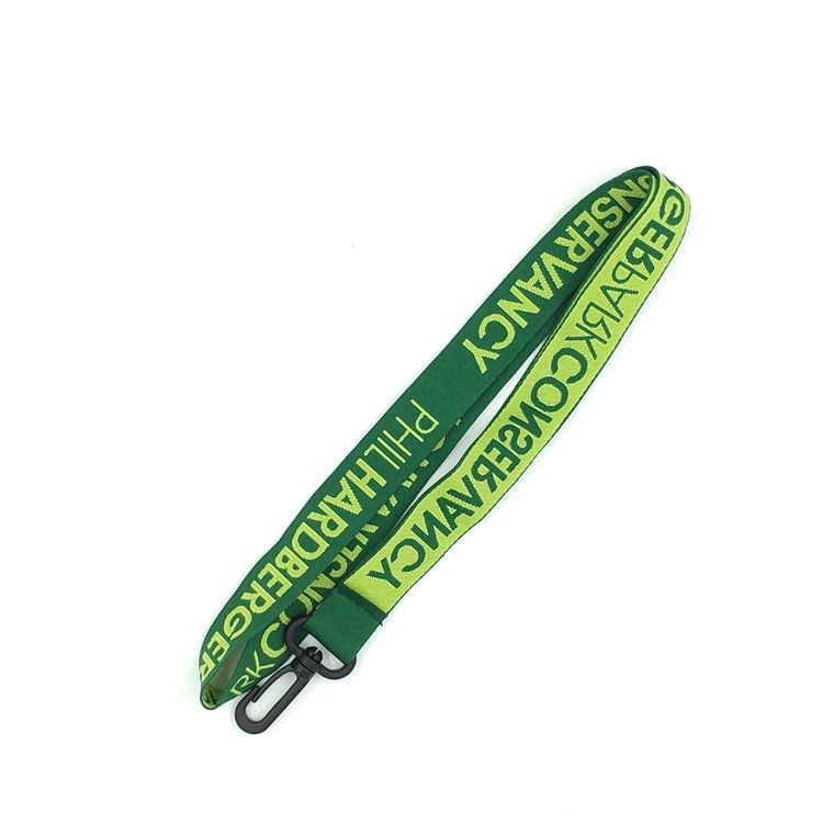 460mm Length Green Logo Custom Polyester Woven Lanyard With Plastic Hook